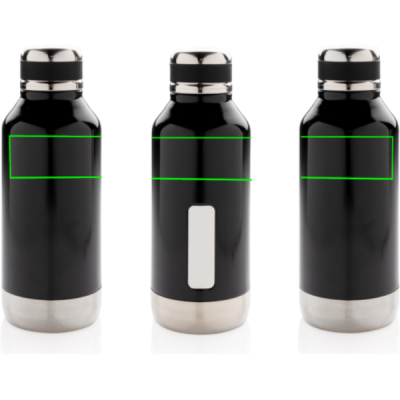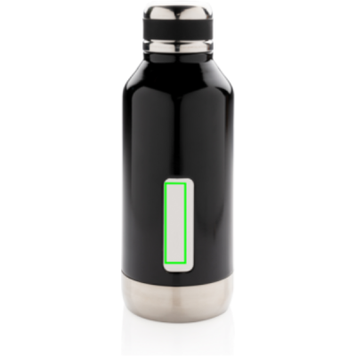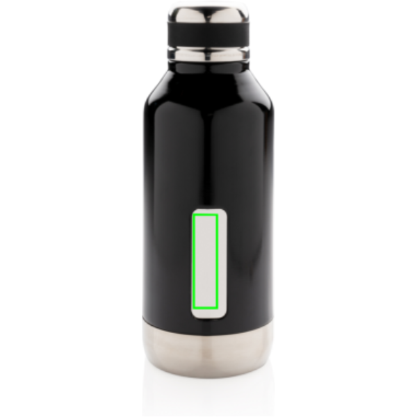 Auslaufsichere Vakuumflasche mit Logoplatte, Schwarz
