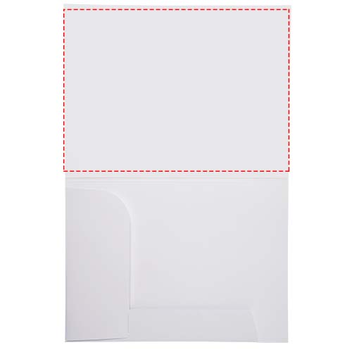 A4 350g/m2 Dokumentenmappe mit Visitenkartenschlitz auf der Innenseite. In das Kartenfach passen Visitenkarten im Format 55 x 85 mm. Vollfarbdruck auf der Vorder- und Rückseite sowie auf der Innenseite der Mappe möglich.