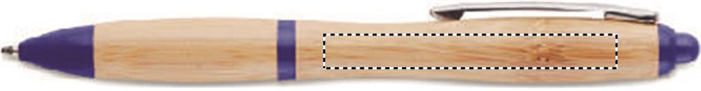 Druckkugelschreiber mit Schaft aus Bambus. Clip aus Metall, Drücker und Spitze aus ABS. Blaue Tinte. Bambus ist ein natürliches Produkt, es kann daher zu leichten Abweichungen in Farbe, Dekor und Maßen kommen.