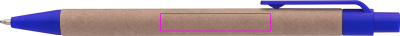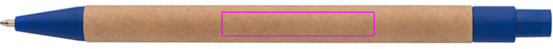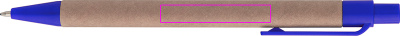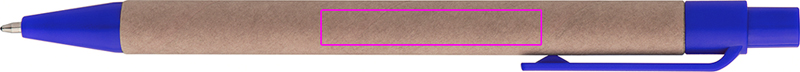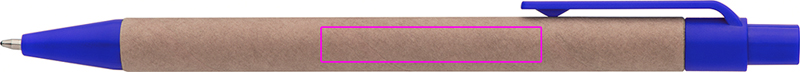 Kugelschreiber aus Recyclingpapier und farbigen Kunststoff-Applikationen, blaue Schrift. Ihr Logo wird rechts neben dem Clip aufgedruckt.