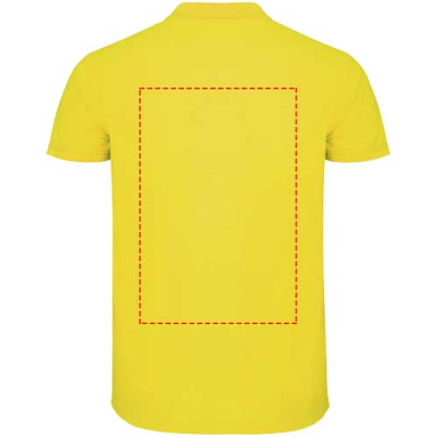 Kurzärmeliges Poloshirt für Herren. Verstärkte und verdeckte Nähte am Innenkragen. 1x1 Rippstrickbündchen an Ärmeln und Kragen. Seitennähte. 3-Knopfleiste und Seitenschlitze. Optionale Tasche. Herausnehmbares Etikett. Das Modell ist 124 cm groß und trägt Größe 5/6.
