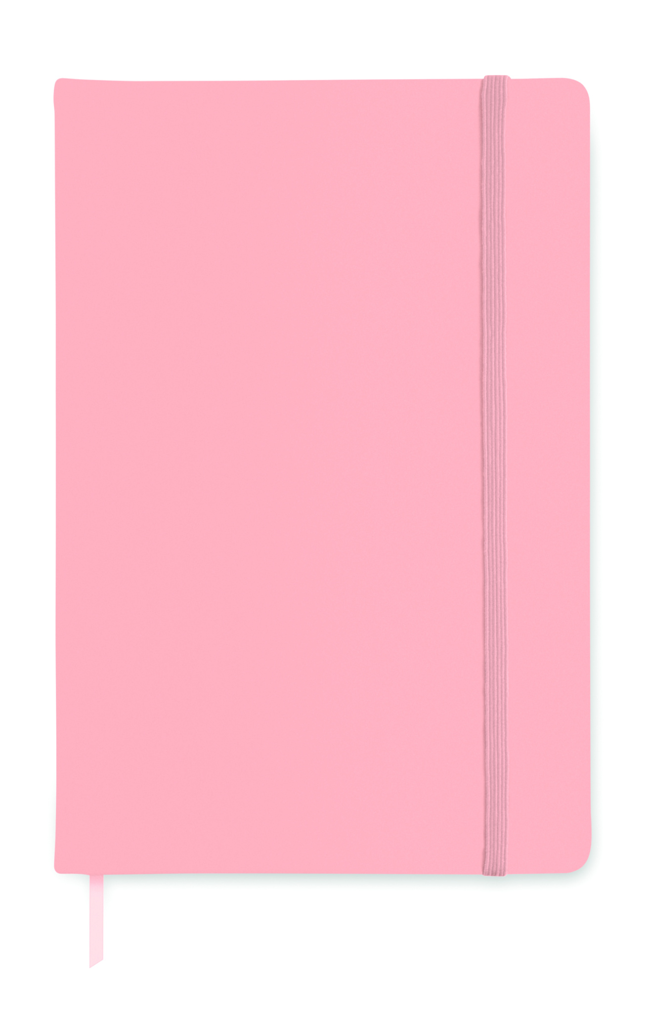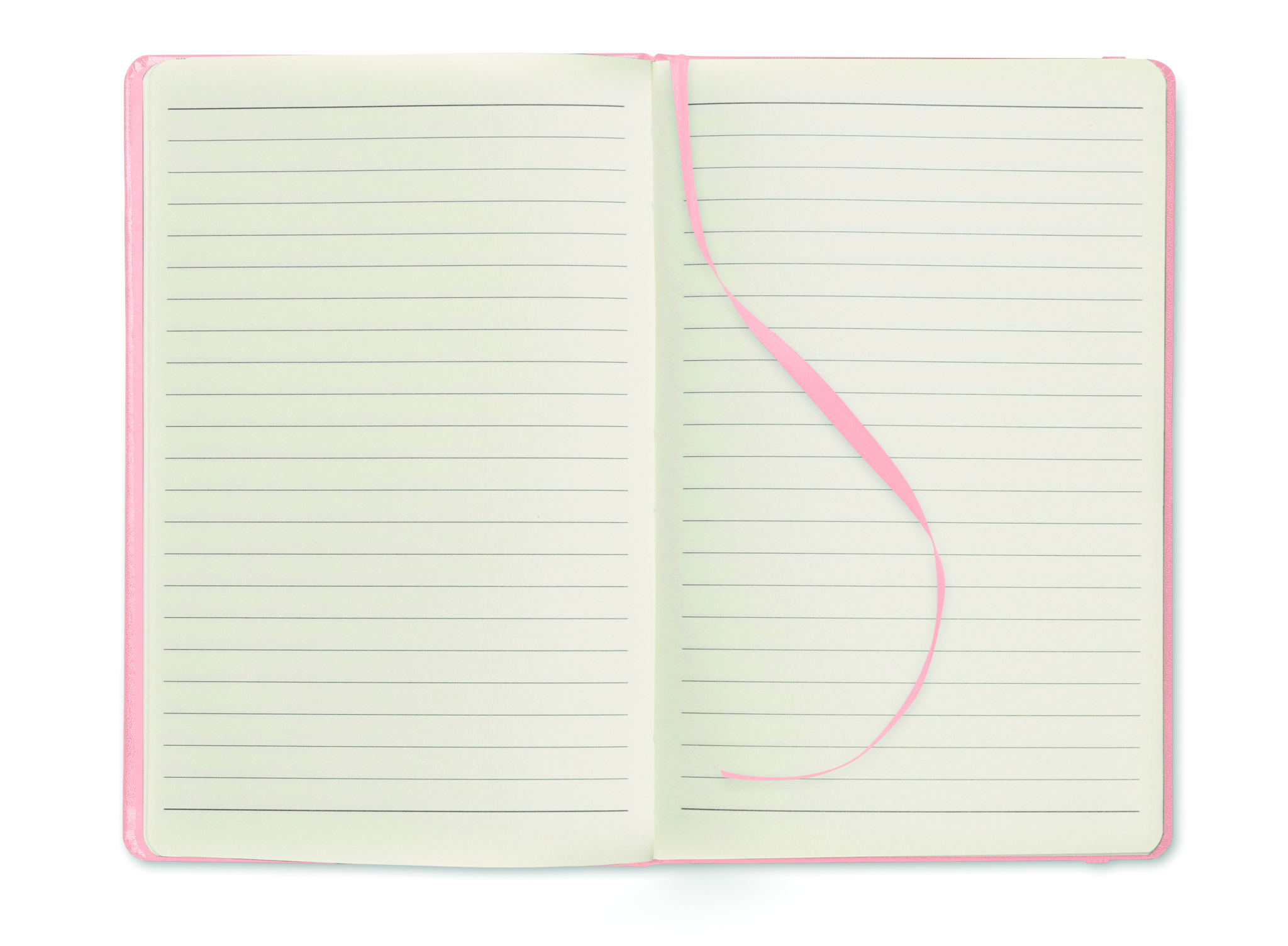 A5 notebook with hard PU cover. Casebound. 192 lined pages (96 sheets). Matching elastic closure strap and ribbon page-marker.