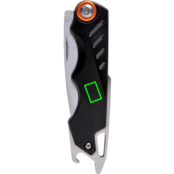 Ultra-strong knife with 4 functions. Packed in luxury gift box including high quality 1680D pouch. Aluminium material body and stainless steel tools. Tools included: Foldable blade, liner lock, belt clip, bottle opener.