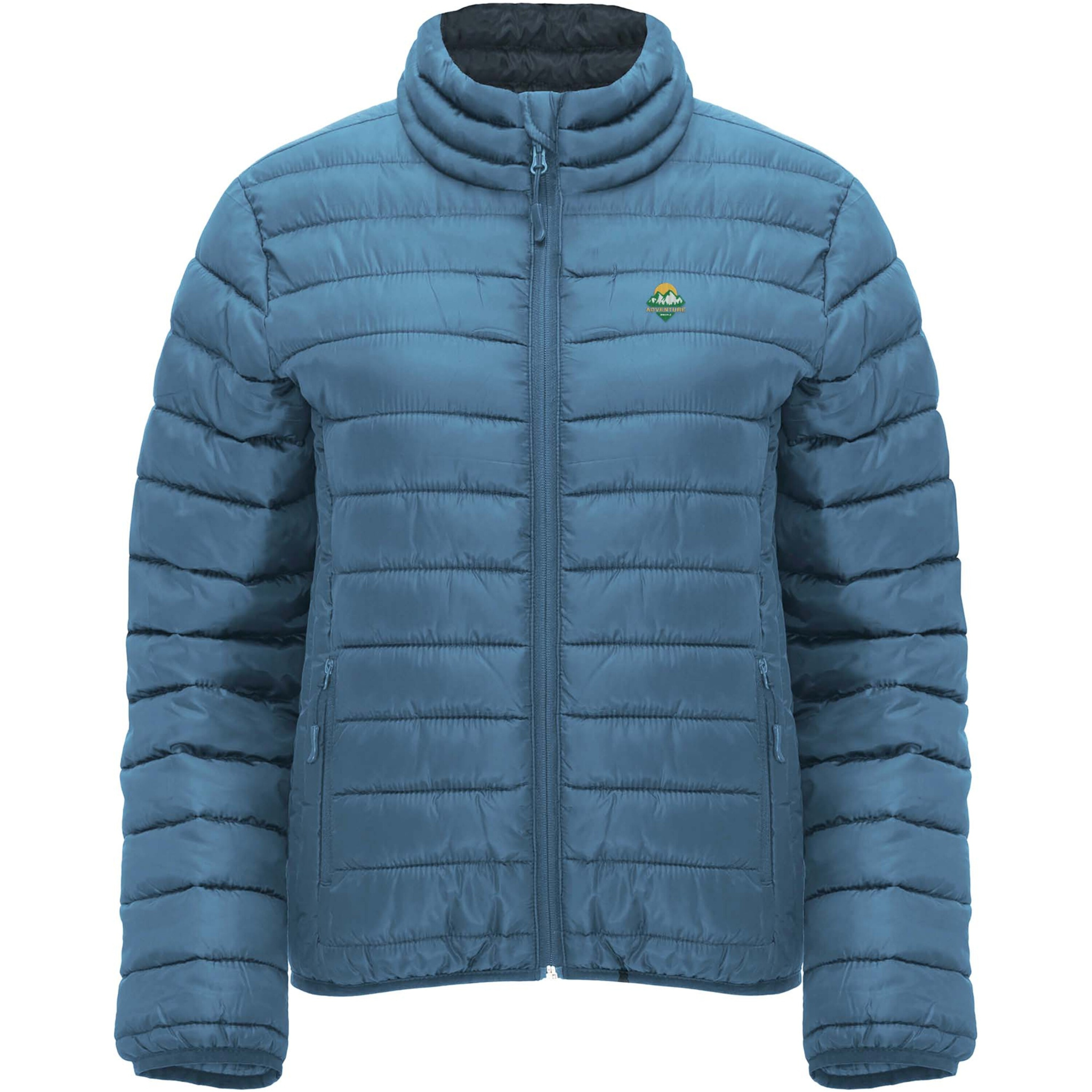 Women's quilted jacket with feather touch padding. Inverted zippers with matching chin protector and puller. Two front pockets with zippers. Matching elastic edging in collar, cuffs and hem. Contrasting inner lining. Includes stow carry bag. Lightweight and foldable garment. Fitted cut. Removable label. Water resistant. Wind-proof. The model is 179 cm and is wearing size S.