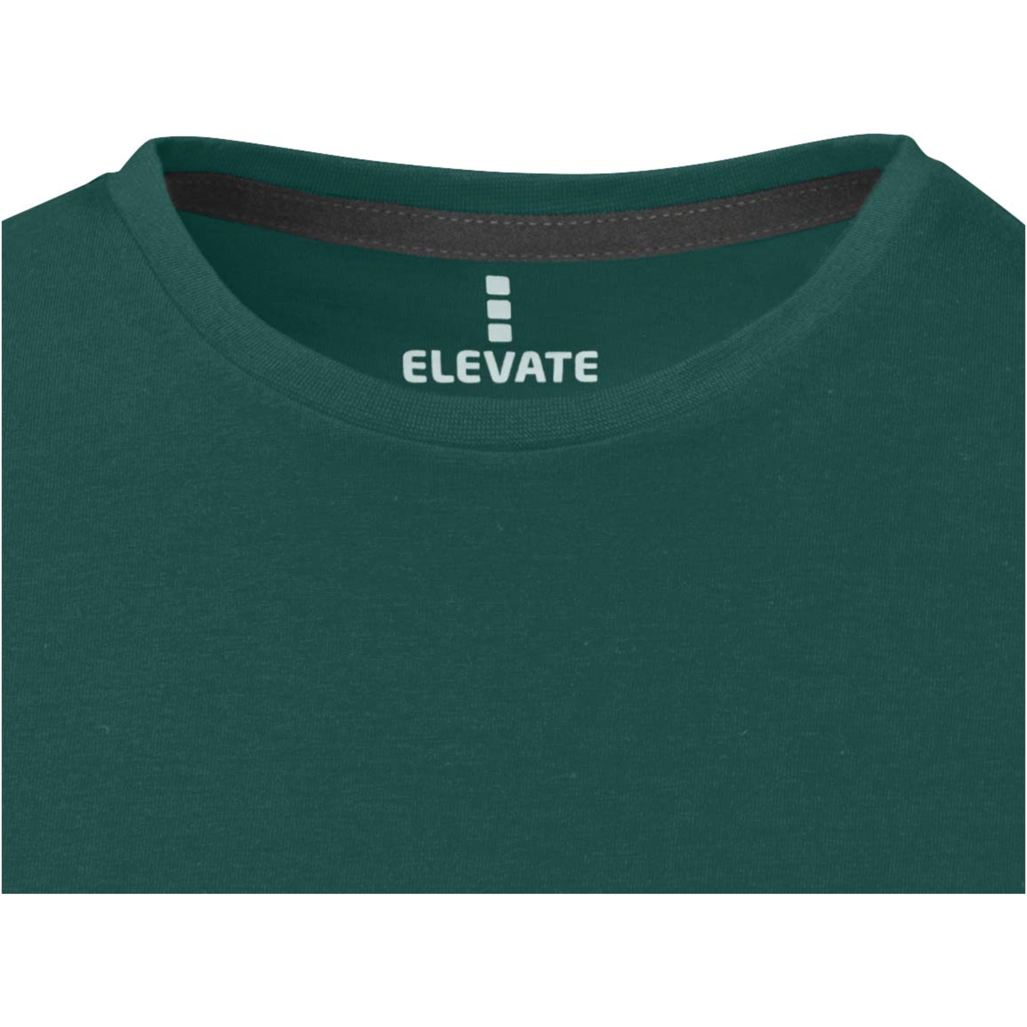 The Nanaimo short sleeve women's t-shirt made of 160 g/m² cotton is perfect for any occasion and a comfortable addition to any wardrobe. The ringspun cotton provides a stronger and smoother yarn, resulting in a more durable fabric that guarantees high quality branding. It is shaped for a feminine look and has side seams to ensure a great fit, while the printed in-neck Elevate branding adds to its overall comfort. The re-enforced shoulders also ensure a continuous fit even after long-term use.