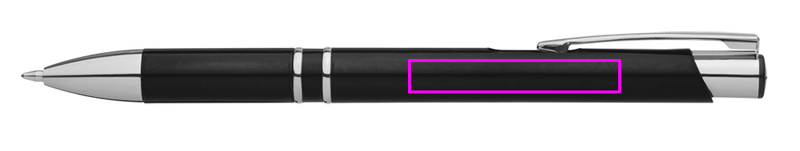Plastic ballpen with blue-writing plastic refill and silver applications. Your logo will be printed below the clip.