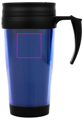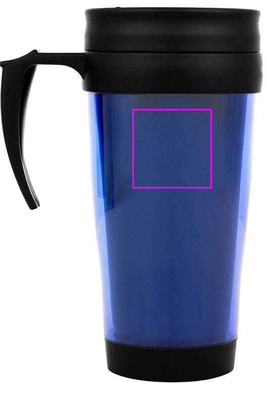 Hot or cold? This 0,4l double wall plastic cup with sliding ledge is great for any journey, and keeps your drinks warm or cold. Fits in all car cup holders. Really fancy in metallic silver, blue and red cups. Also available in white which is great for multi colour print. We will put your logo on the left side of the handle. Each cup is packed in a single cardboard box.