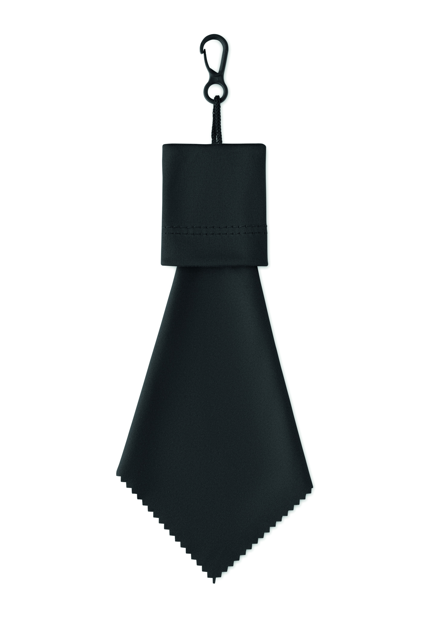 RPET cleaning cloth with self material pouch with PP plastic hanging hook.