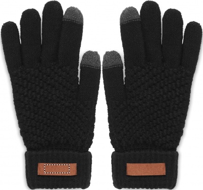 Tactile gloves for smartphone in RPET with label for printing area.