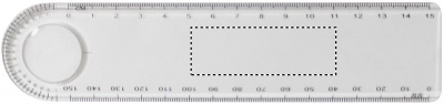 15cm plastic ruler with magnifier and protractor.