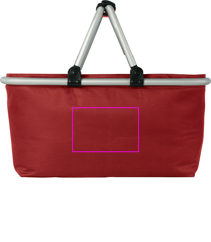 Shopping basket with aluminum frame and large cooling compartment. We print your logo on one side.