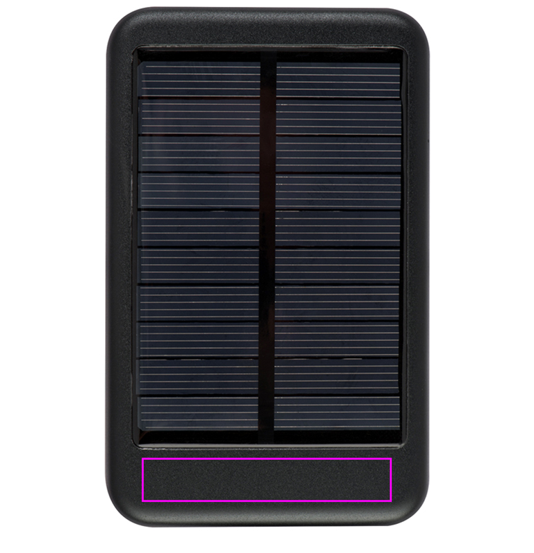 Solar powerbank (equipped with 20 solar panels) made of metal with 4,000 mAh capacity and USB charging cable. So you can charge your smartphone or tablet on the go and without a power outlet. We will print your logo below the solar field.