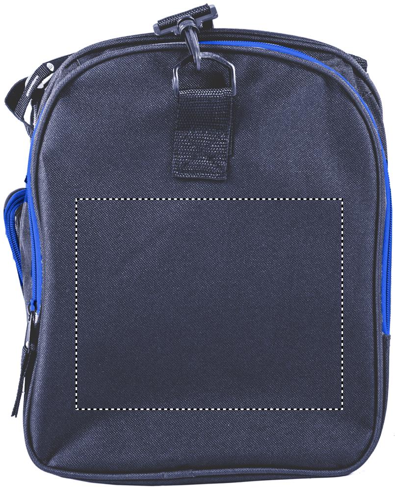 Sports bag in 600D polyester with 2 zippered side compartments and 1 zippered front pocket with earphone eyelet. Detachable and adjustable shoulder strap included.