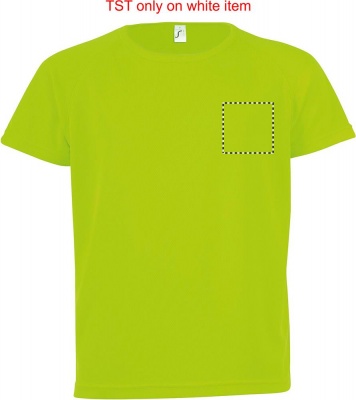 SOL'S SPORTY Kids T-shirt in breathable polyester material with raglan sleeves, banded collar and flatlock seams makes this product ideal for any sports activity. It comes in a variety of sizes and colours as well as in neon colours. Fabric details: 140g/m² 100% polyester mesh. Only sold with print. Sizes - 6 yrs: 106-116cm (XL), 8 yrs: 118-128cm (XXL), 10 yrs: 130-140cm (3XL), 12 yrs: 142-152cm (4XL). Sublimation print available on white item only.