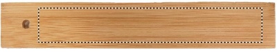 6 pieces stationery set. Include jute and cotton pouch, bamboo ruler, wooden sharpener, eraser, paper pencil, ball pen with cardboard barrel and blue ink. Bamboo is a natural product, there may be slight variations in colour and size per item, which can affect the final decoration outcome.