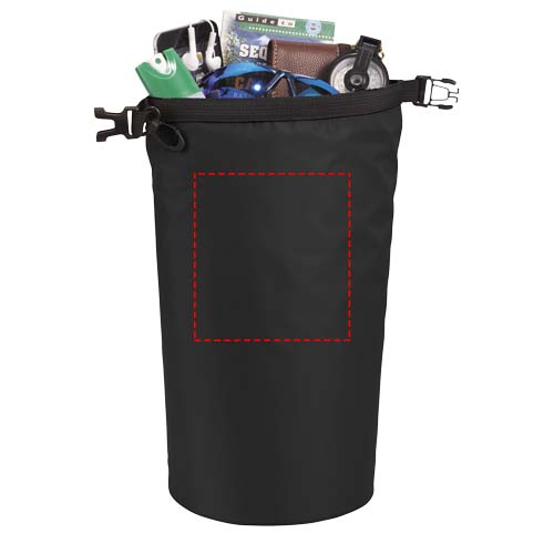 A waterproof bag great for the outdoors. The roll-top closure with plastic buckle ensures valuables are kept dry and safe. Easily attached to a bag or belt. When rolled down and buckled, content capacity is 5 liters.