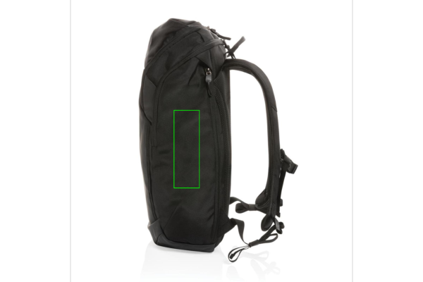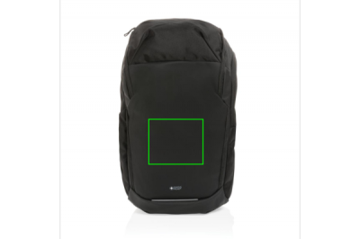 Swiss Peak AWARE™ RPET 15.6 inch business backpack is a weather-resistant backpack for work and everyday adventures. The backpack features a roomy main compartment and on-the-go quick access to your laptop via the side zipper. Comfortable to wear thanks to the contoured, breathable shoulder straps, padded back panel and fully adjustable chest trap. A top zipper pocket holds all your daily essentials. The exterior is made with PU and 1200D recycled polyester. The lining is made with 100% 150D recycled polyester. With AWARE™ tracer that validates the genuine use of recycled materials. Each bag has reused 38.19 0.5L PET bottles. 2% of proceeds of each product sold containing AWARE™ will be donated to Water.org.
