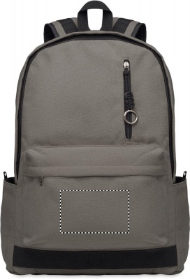 Taaskasutatud pestud lõuendist 15-tolline sülearvuti seljakott. Suur eesmine lukuga tasku sisemise sülearvuti sahtliga. Ees väike lukuga tasku. Kaks külglibisevat taskut. Polsterdatud selja- ja õlarihmad, tagapaneel ja alus. 450 gr/m².