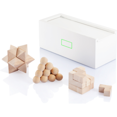 Treeni oma meelt nagu lihaseid! Mõttemänguasjad on ülilõbus viis analüüsi- ja probleemide lahendamise oskuste parandamiseks. See ajumängukomplekt sisaldab 3 puslet ja on valgeks värvitud männipuidust karbis. Valmistatud FSC®-sertifikaadiga puidust. Saadaval FSC®-sertifikaadiga kraft-kinkepakendis.