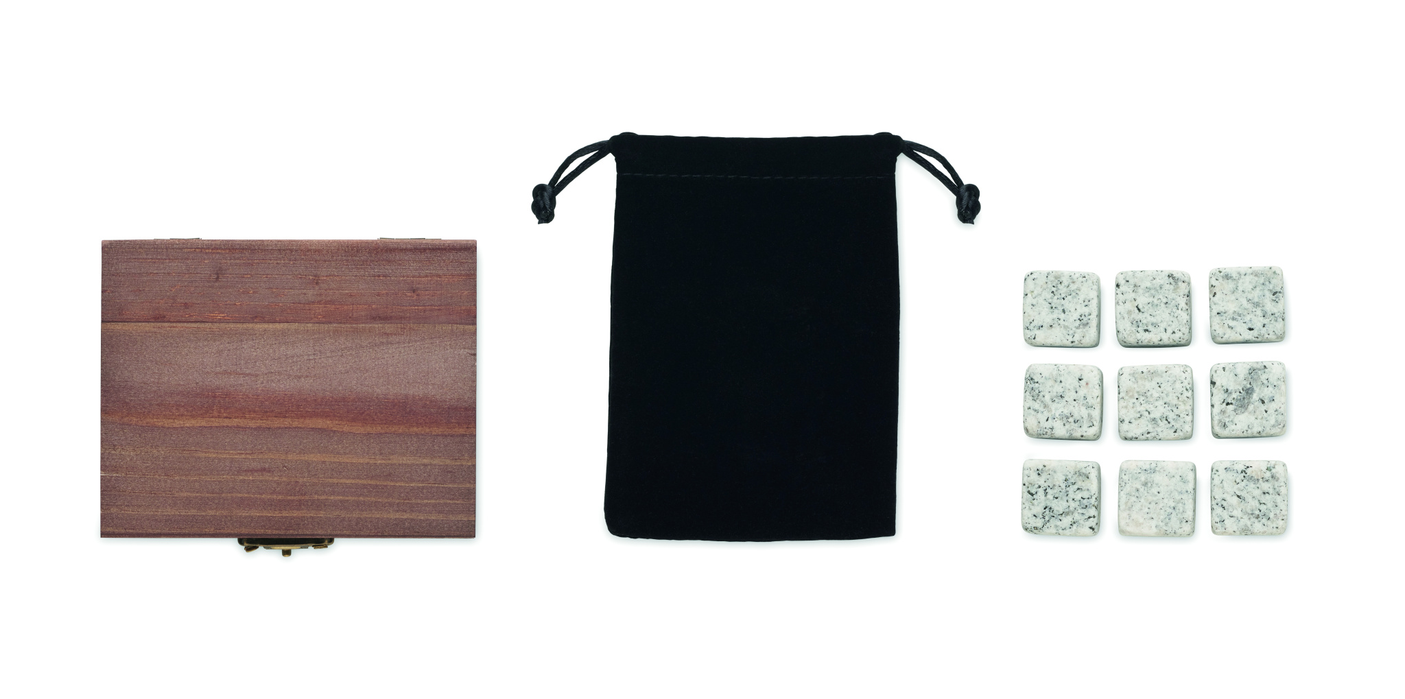 Logotrade reklaamtoote foto: 9 kivist jääkuubikute komplekt karbis ABERDEEN