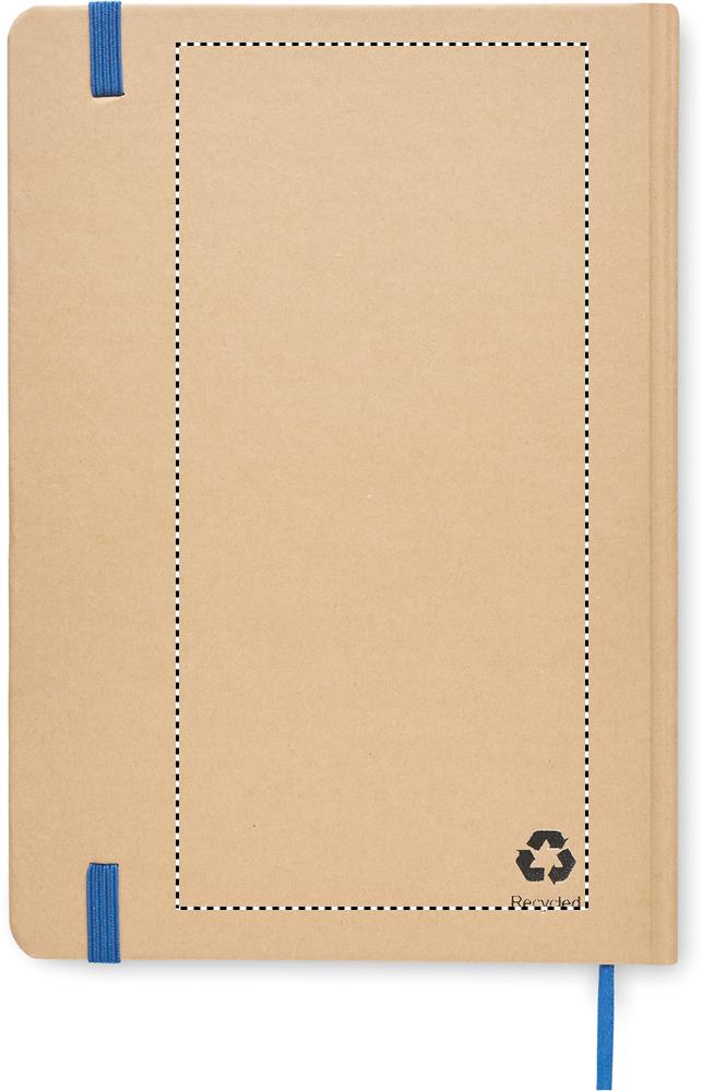 A5 märkmik kõva taaskasutatud pappkaanega. Casebound. 160 ruuduga taaskasutatud lehte (80 lehte). Elastne sulgemisrihm, lindiga järjehoidja.