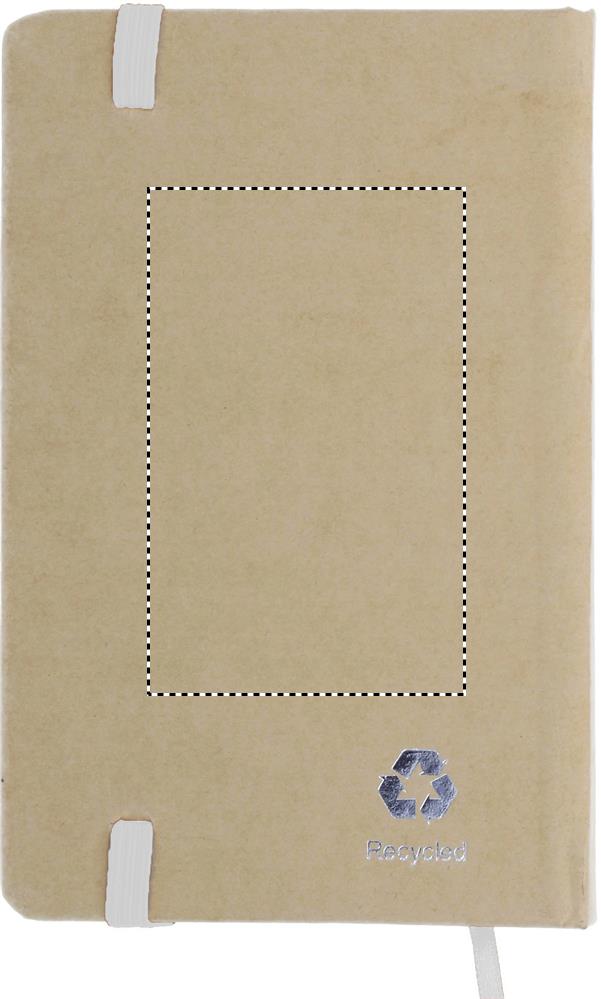 A6 taaskasutatud paberist kõvakaaneline märkmik. Casebound. 192 tavalist lehte (96 lehte). Elastne sulgemisrihm ja paelaga järjehoidja.