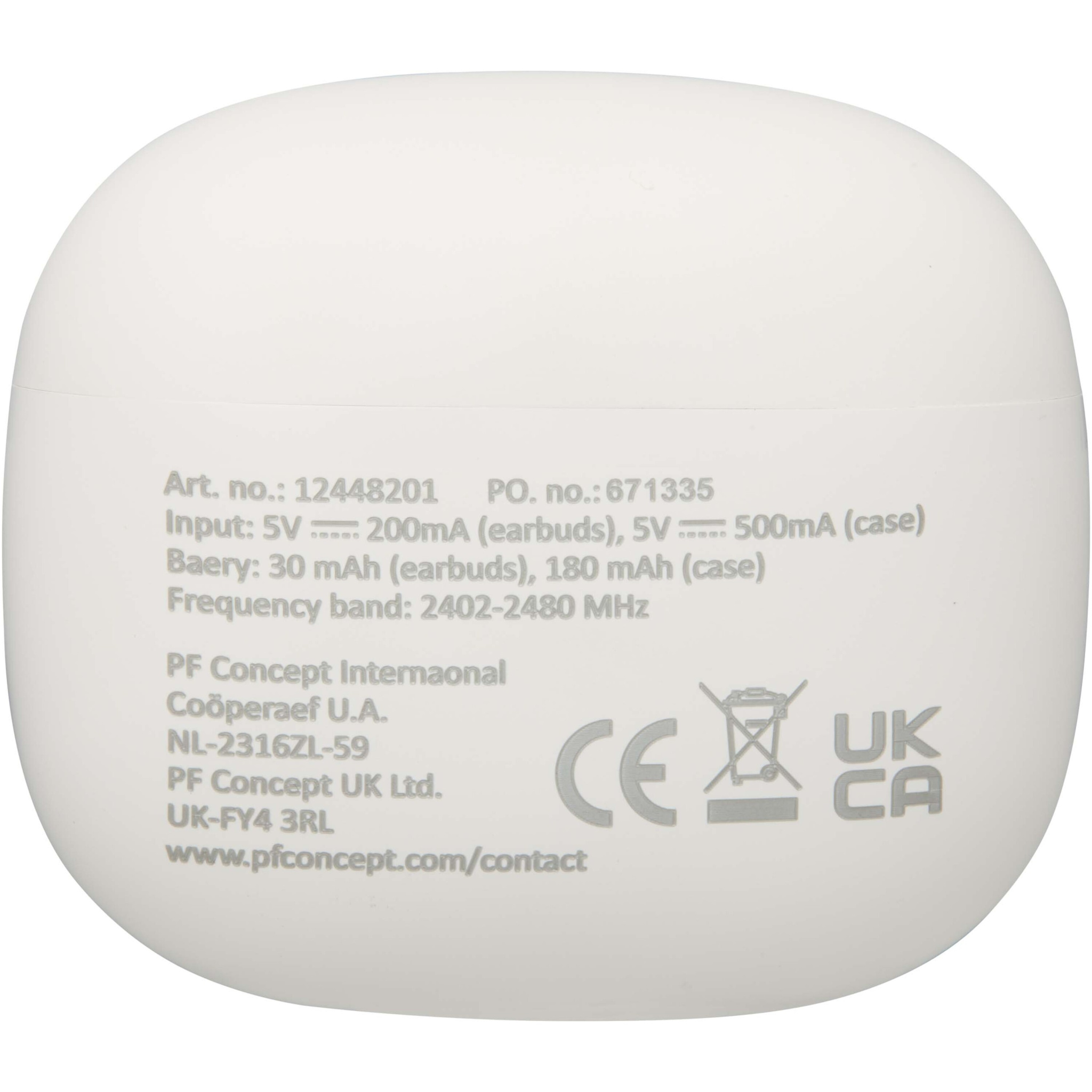 Nautige stiilset juhtmevaba heli Alterf TWS Bluetooth® peakomplektiga. See stereo peakomplekt on valmistatud taaskasutatud plastist ja varustatud pehmete silikoonist kõrvaotstega mugava istuvuse tagamiseks. Komplektis on kompaktne laadimisümbris. Bluetooth® 6.0 abil pakub see kuni 4 tundi mängu- või kõneaega ning laadib end vaid 1–1,5 tunniga. Komplektis on 30 cm pikkune USB-A–Type-C laadimiskaabel.