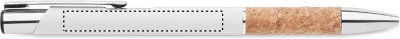 Alumiiniumist valmistatud pastapliiats, mille käepide on korgist, Valge