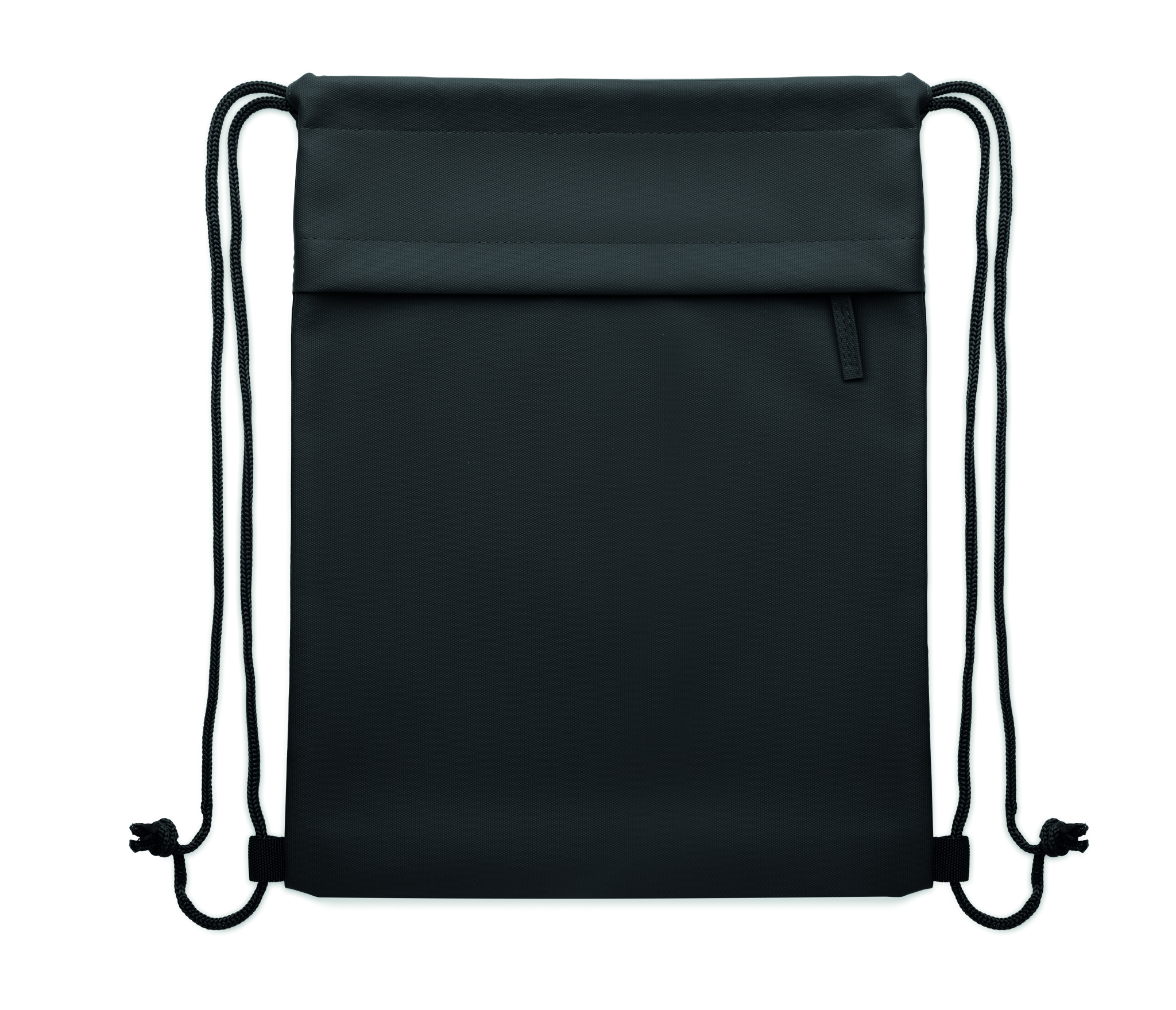 Must nööridega sussikott PU-kattega 600D RPET polüestrist ja 190T RPET polüestervoodriga. Lukuga esitasku.