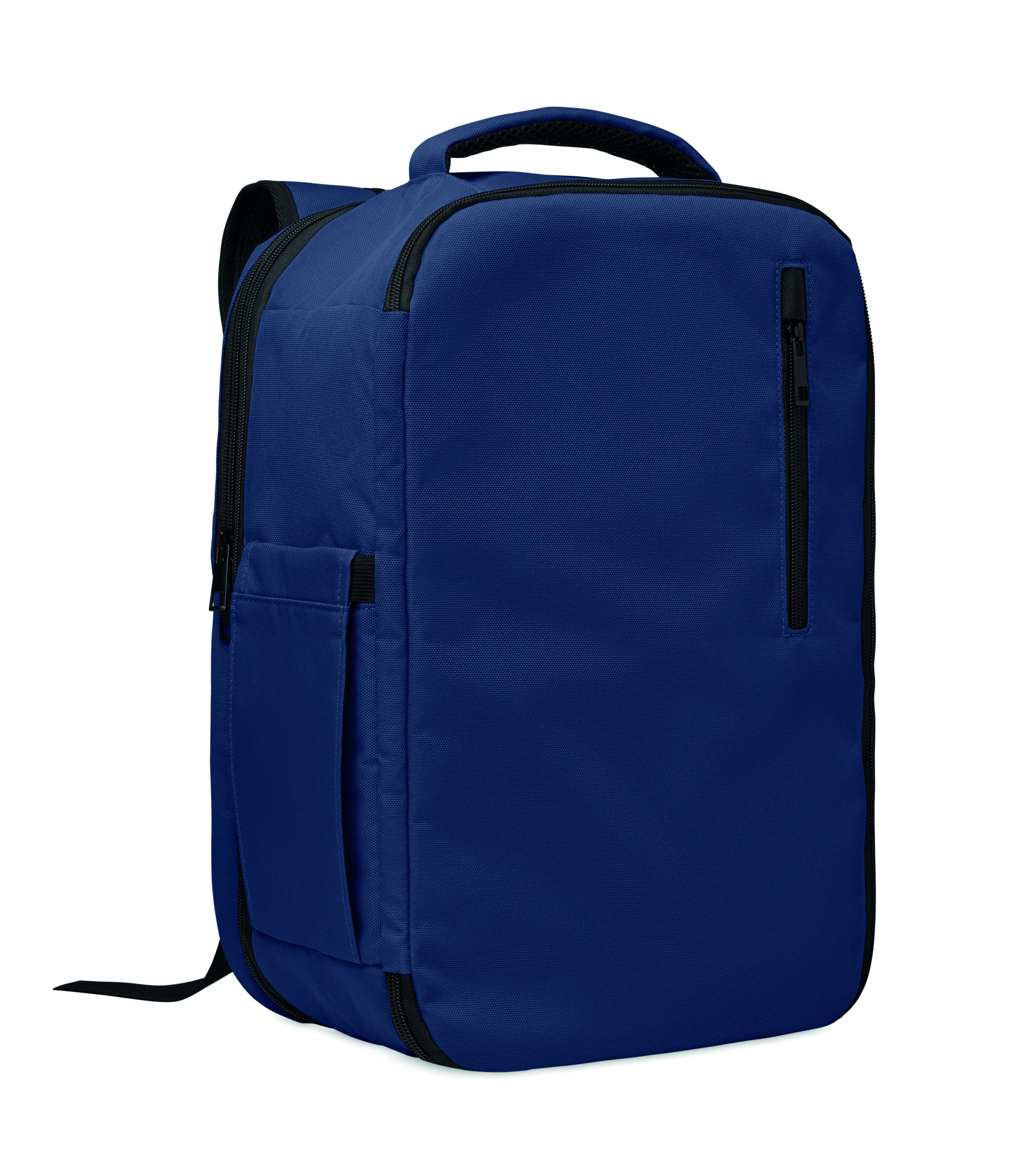 "600D RPET polüestrist valmistatud laiendatav käsipagasikott 180° avausega. Sellel on kahe avatud sektsiooniga põhiosa, võrgust vahesein, polsterdatud 15-tolline sülearvutitasku ja pagasirihm."