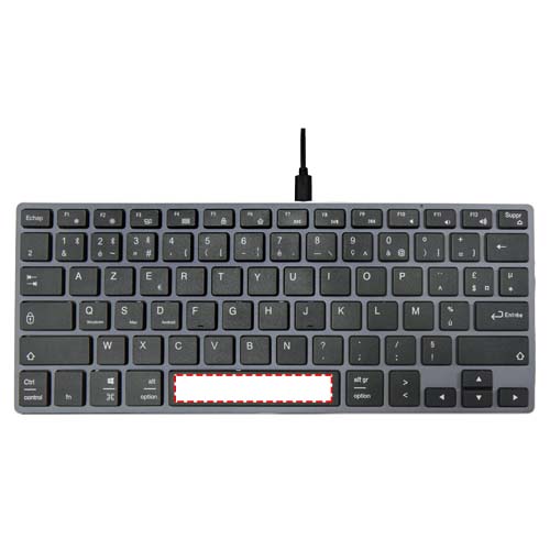 Kerge, kuid vastupidav ja stiilne klaviatuur (AZERTY paigutus 78 klahviga) alumiiniumkorpusega. Klaviatuur toetab Bluetooth® 4.0 stabiilse ühenduse ja madala energiatarbimise tagamiseks ning ühildub PC/sülearvutite, tahvelarvutite, mobiiltelefonide, nutitelerite ja muude Bluetooth® funktsiooniga seadmetega. Töökaugus on kuni 10 meetrit ning klaviatuuril on 350mAh sisseehitatud laetav aku. Tarnitakse esmaklassilises värvilise kleebisega kraftkarbis.
