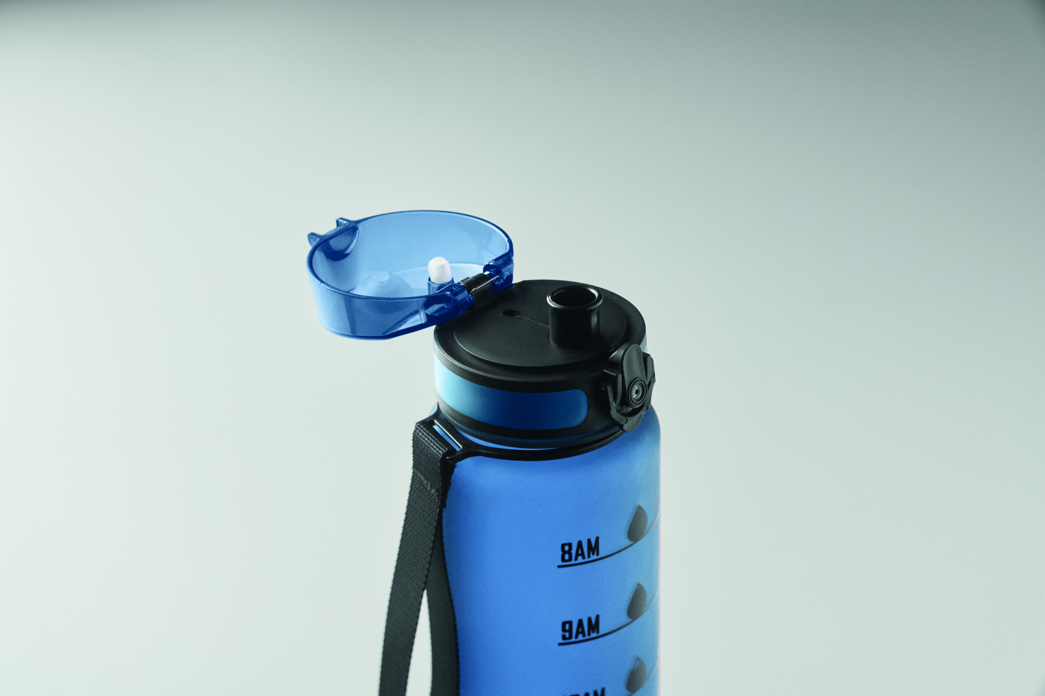 RPET-materjalist spordi veepudel, motiveerivad ajamärgid, ühe käega avatav klapiga kaas, turvalukk ja kanderihm. Lekkevaba. Maht: 1 l.