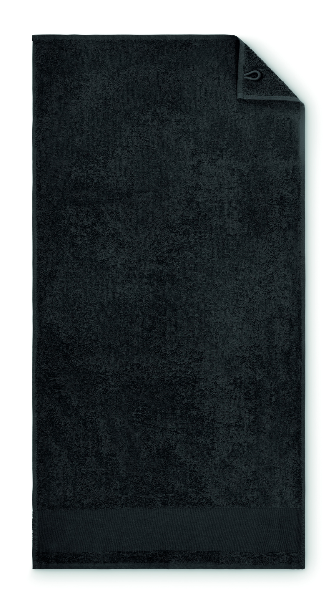 Must 100% puuvillast käterätik, 380 g/m² kangast, puuvillase riputusaasaga. Pehme ja imava disainiga. Mõõt 50 cm x 100 cm.