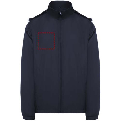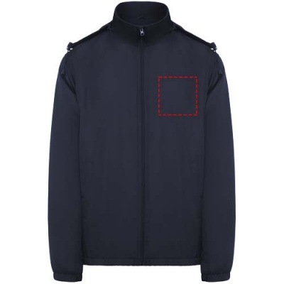 Kerge veekindel jope. Kõrge krae ja kokkupandav reguleerijatega kapuuts. Mikrofliisist vooder. Ees tõmblukk ja lõuakaitse. Elastsed kätised. Kaks lukuga küljetaskut. Sisemine vasak rinnatasku. Eemaldatav etikett. Veekindel. Tuulekindel. Meesmodell on 184 cm pikk ja kannab suurust L ning naismodell on 174 cm ja kannab suurust S.