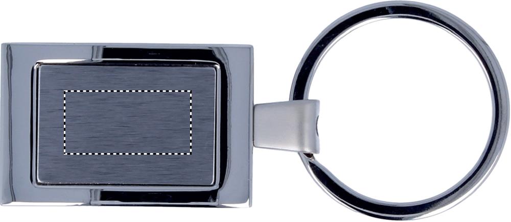 Metallist ristkülikukujuline võtmehoidja. Üksikult pakitud kinkekarpi.