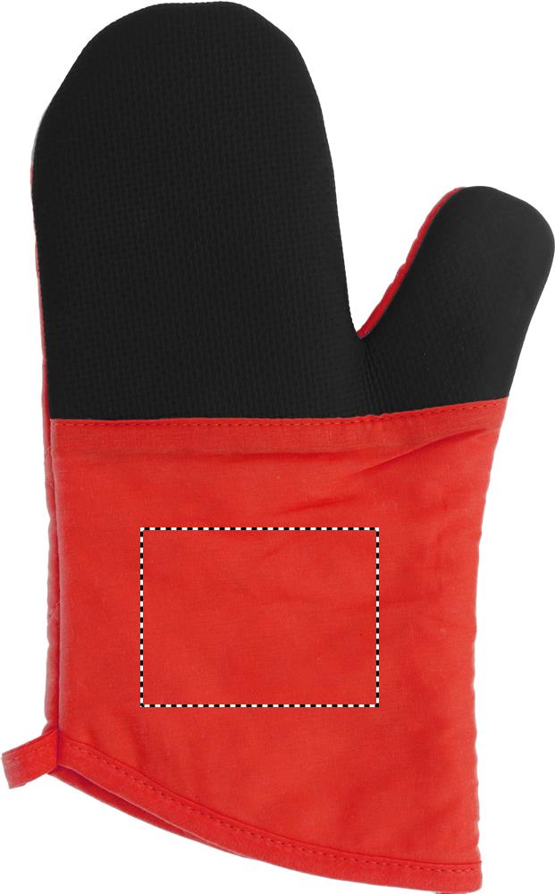 Kasulik puuvillasest materjalist köögi ahjukinnas, mille üks pool on kummist.