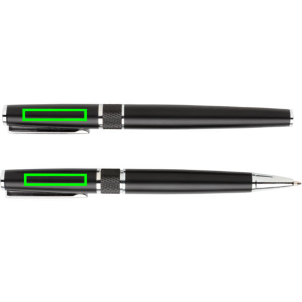 See luksuslik pliiatsikomplekt toob teie kirjutamisse elegantsi ja stiili. Komplekt koosneb pastapliiatsist ja sinise tindiga rullkuulist kaunis reljeefse logoga kinkekarbis. Pliiatsil on ülimalt sujuvaks kirjutamiseks t/c kuuliga dokumentaalne tinditäite. Rullpallil on sinine Dokumental tindi täidis. Mõlema pliiatsi keskmine kirjutamispikkus on 1200 meetrit.