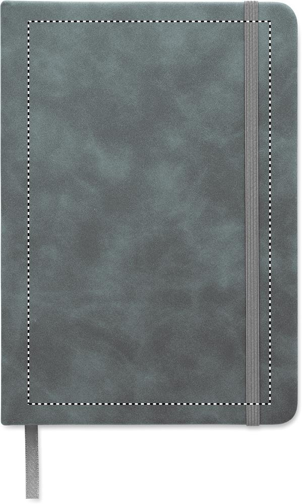A5 märkmik 40% ulatuses taaskasutatud tarbimisjärgsest pastelset värvi kõvast PU-kaanest ja 60% ulatuses PU-kaanest. 160 lehekülge, 70 g/m² taaskasutatud paberist (80 lehte). Märkmikuga samas toonis kummipaela ja järjehoidjaga.