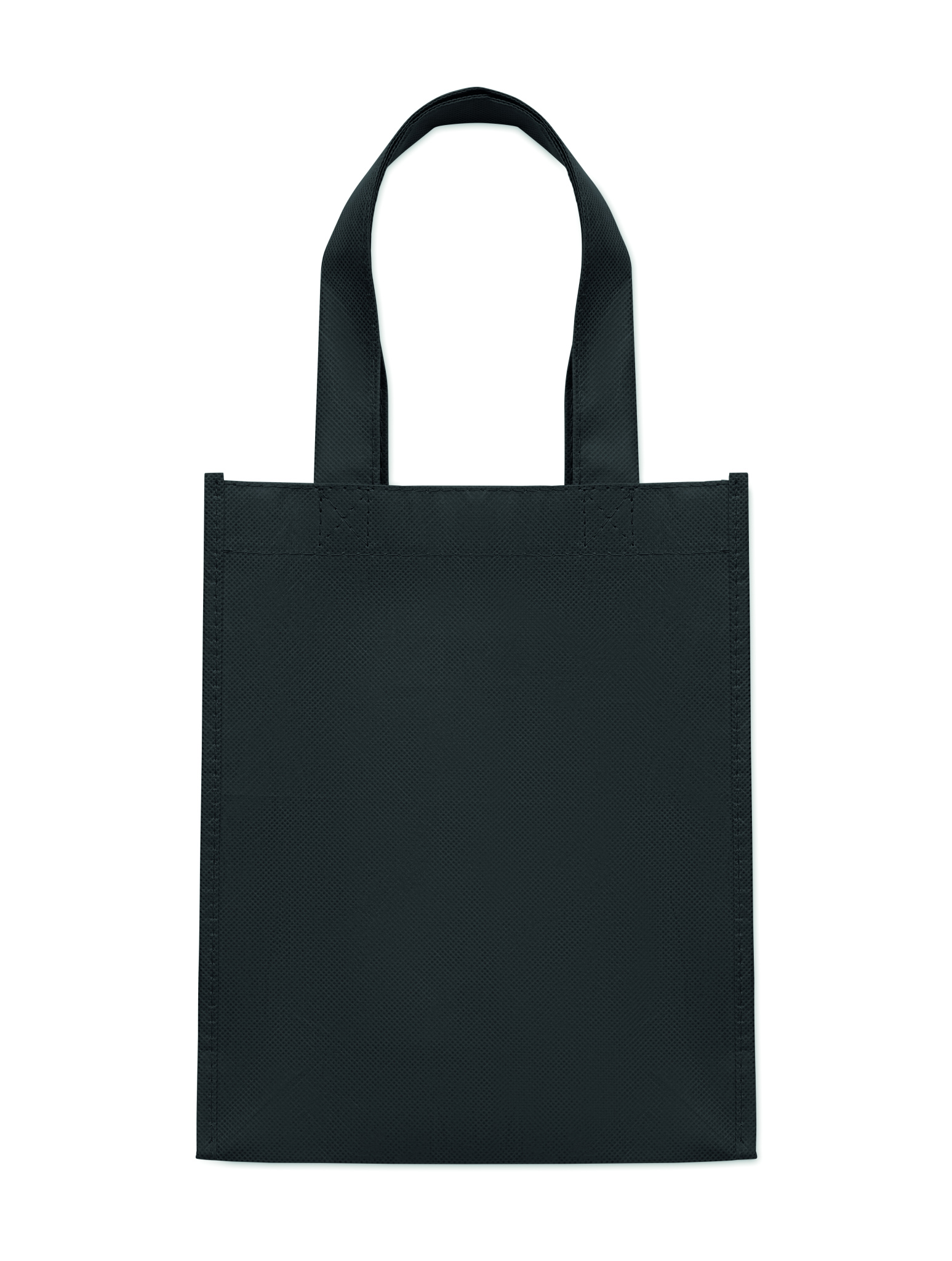 Väike must kinkekott RPET-kootud materjalist lühikeste sangadega. 80 g/m².