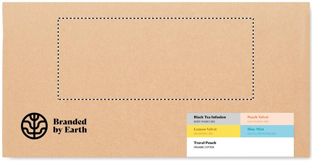 Unisex reisikinkekomplekt firmalt Branded By Earth. Sisaldab vegan 50gr kehapesuvahendit, šampooni, näokoorijat, mitsellaarveekotti ja orgaanilisest puuvillast reisikotti. Kõik tükid pakitud purki. Esitatakse taaskasutatud paberist karbis. Valmistatud EL-is.