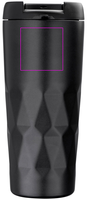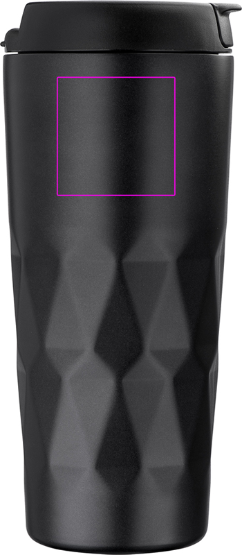 Kaksiseinäinen jalo ruostumattomasta teräksestä valmistettu muki, jonka tilavuus on 500 ml; mikä tärkeintä, tiivis. Logosi kaiverretaan.