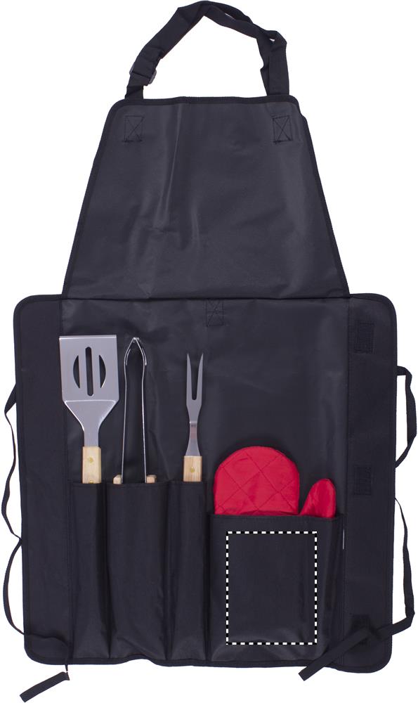 600D polyesterinen esiliina grillisetti, sisältää 3 erilaista grillaus välinettä.
