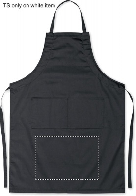 190gr/m² säädettävä keittiöesiliina kahdella etutaskulla, 10% puuvillaa ja 90% polyesteriä.