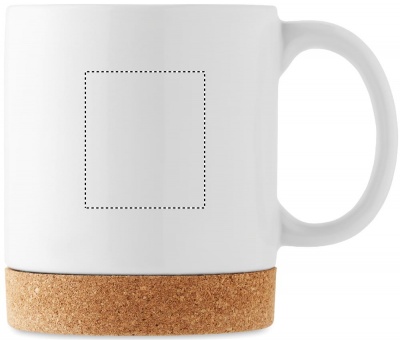 Keraaminen muki, jossa korkkipohjainen yksityiskohta. Tilavuus: 280 ml.
