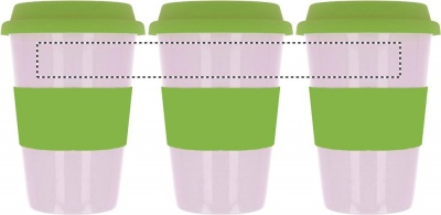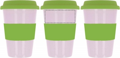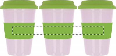 Yksiseinäinen 400 ml keraaminen muki silikonikannella ja silikonisella vyöteellä, tuote ei ole mikroaaltouunin kestävä. Keraaminen painatus on konepesun kestävä. Tuote saattaa kuumentua ulkopuolelta käytössä.