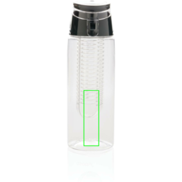 Trendikäs infuusiopullo veden maustamiseen hedelmillä ja yrteillä. Runko naarmuuntumatonta ja kestävää tritaania. Lukittava kansi ABS-muovia. Tilavuus 700ml.