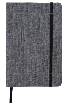 A5-muistikirja, jossa on tyylikäs 300D-kanvas polyesterikansi, musta kumisuljin ja kirjanmerkki. 160 riviä sivua. Painamme logosi kanteen.