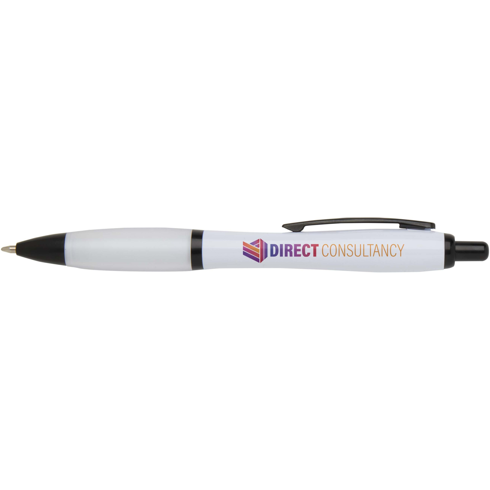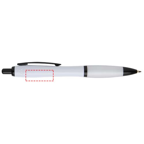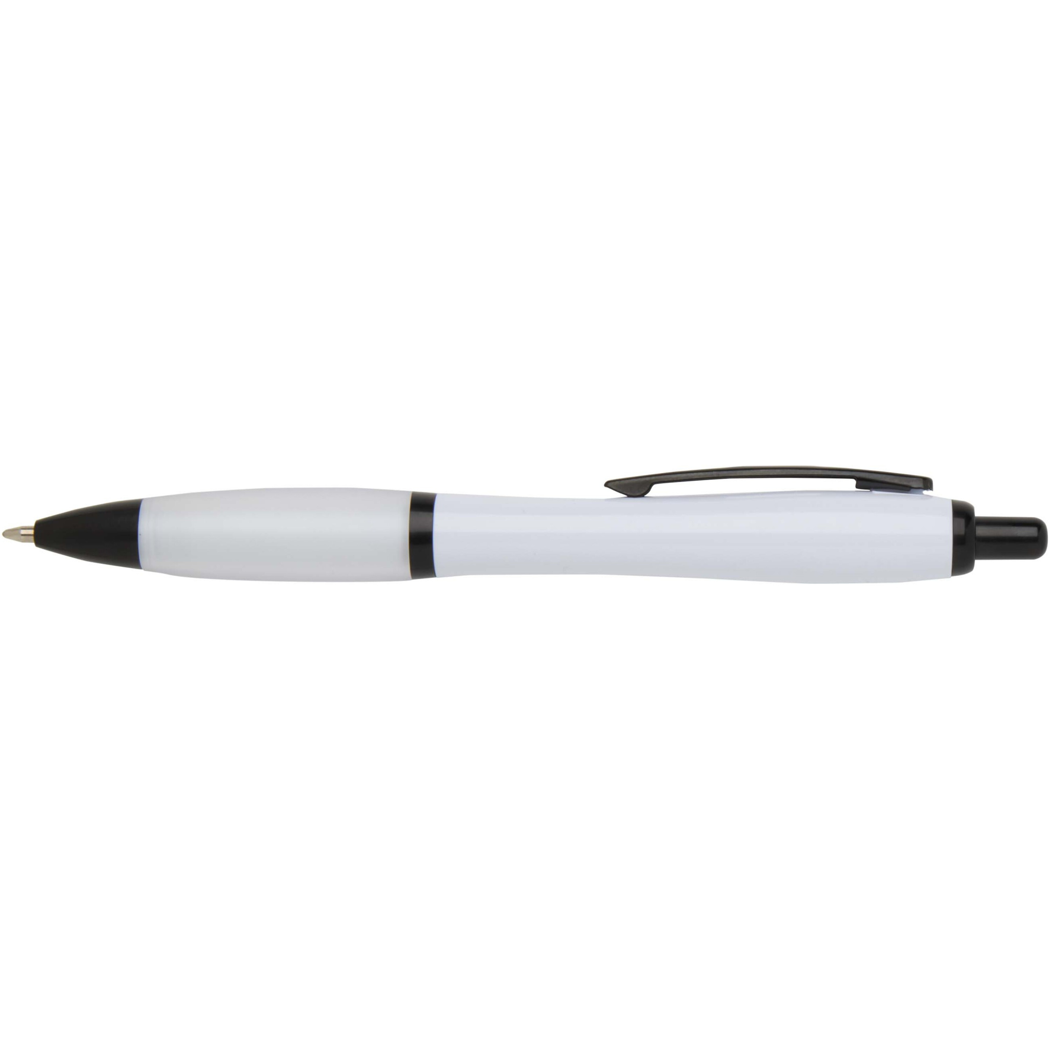 Nash kierrätysmuovista valmistettu kuulakärkikynä mustilla koristeilla (musta muste), Valkoinen