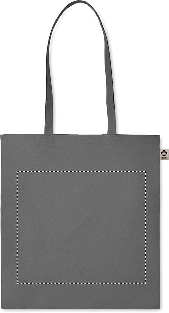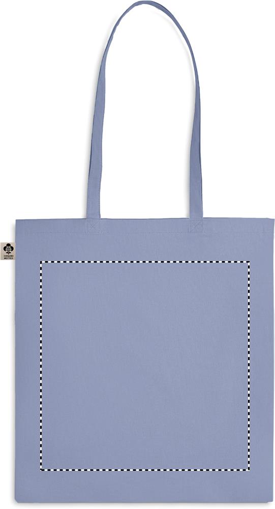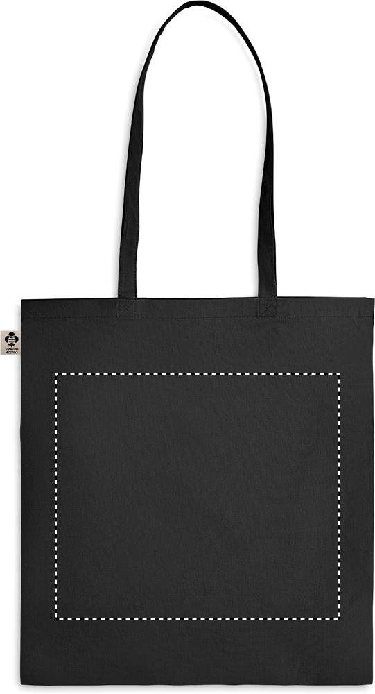 140 gr/m² 100% luomupuuvillasta valmistettu kassi, pitkillä kahvoilla.