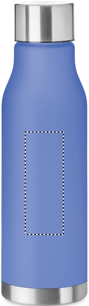 RPET 600 ml juomapullo kumisella pinnalla ja ruostumattomasta teräksestä valmistetulla korkilla. Tuote on BPA ja vuoto vapaa, ei sovellu käytettäväksi hiilihapollisilla nesteille.